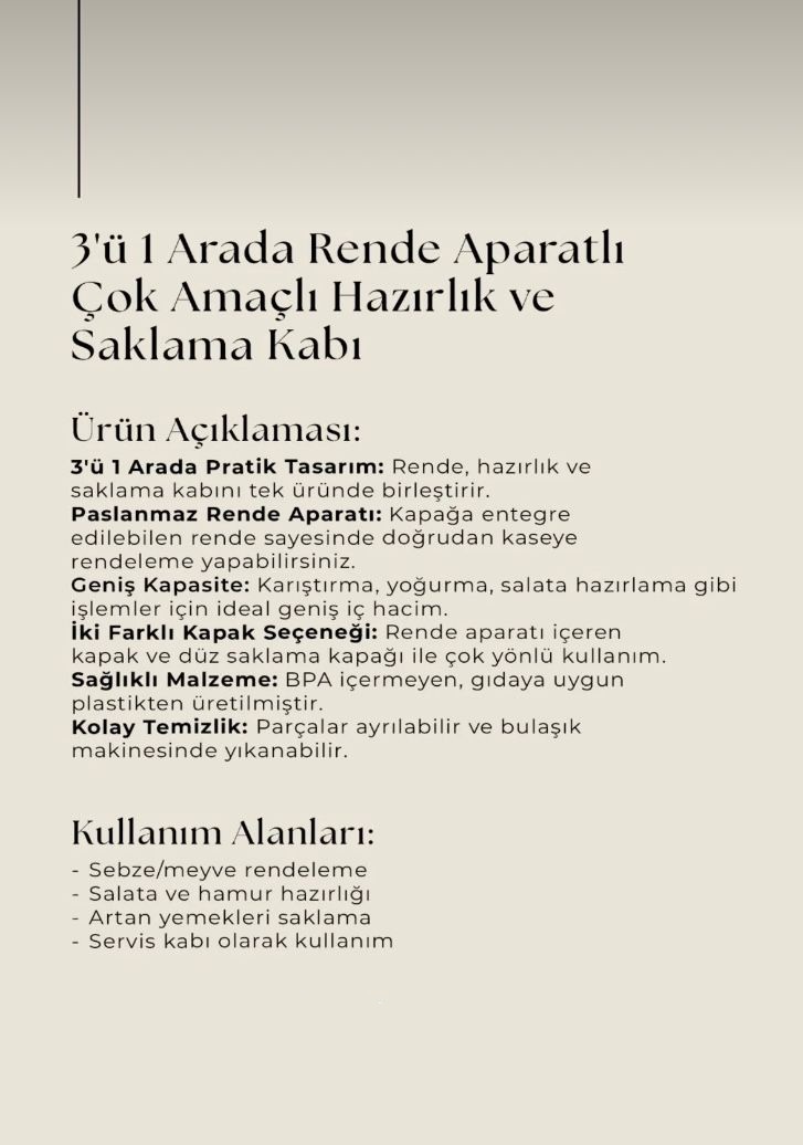 3 Adet ÇOK AMAÇLI MULTİMİX KASE -